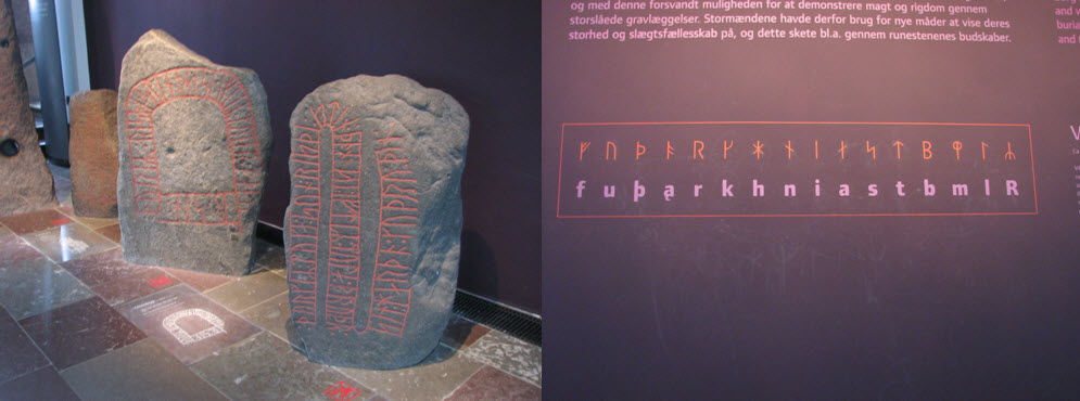 Chử viết của nguời Vikings trên bia mộ bằng đá. Có khoảng 16 runes (có thể xem như 16 mẫu tự Vikings).
