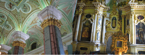 Kiến trúc chính trong khuôn viên pháo đài là nhà thờ thánh Peter và Paul, thiết kế bởi kiến trúc sư Ý khoảng 1712-1733 phối hợp giữa kiến trúc truyền thống nhà thờ Tây phương và kiến trúc chinh thống Nga (Orthodox)