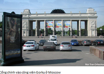 Xuống trạm Metro ở Park Culture, qua câù Krymskiy đi về hướng Gorky Park, chúng tôi vào Gorky thăm trước và hỏi thăm đường hướng , tiết kiệm thời gian, dĩ nhiên phần đông họ không hiểu tiếng Anh, cuối cùng định bụng chỉ có cách hỏii người trẻ tuổi thì may ra. Đối diện với Gorky park là nhà triển lãm tranh ảnh của nghệ sĩ, đi qua khu này ta sẽ thấy hàng trăm tượng của những lảnh tụ thời Sô Viết. Một số tượng bị đánh sập gẩy được thu thập bỏ về đây, hoàn cảnh có vẻ tiêu điều, không được chăm sóc.