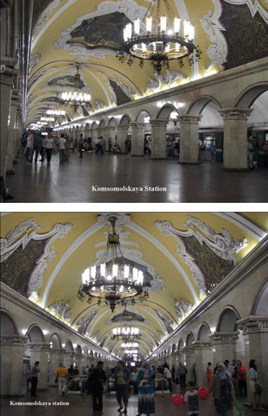 Moscow còn có một hệ thống xe điện ngấm và tiện lợi cho dân chúng. Hầu hết những địa diểm thu hút du khách đều nằm gần trạm xe điện, mổi lần đi là chỉ mua một vé , nơi nào cũng được, không thấy có bán khứ hồi và giá rât rẻ. Có thể nói đây là một trong vài điểm tích cực của xã hội chủ nghĩa còn để lại, bên cạnh sự chạm trổ , kiến trúc đẹp mắt, tinh vi của một số trạm xe điện ngầm mà có lẻ không đâu trên thế giới sánh được.