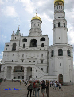 7 Tháp chuông điện Cẩm Linh (Kremlin bell tower) . Tháp xây sau thời Ivan đại đế ,1598-90, cao 80m , coi như là đỉnh cao nhất của Moscow thời đó. Trong tháp chứa 21 quả chuông lớn nhỏ, chuông lớn nhất nặng 70 tấn
