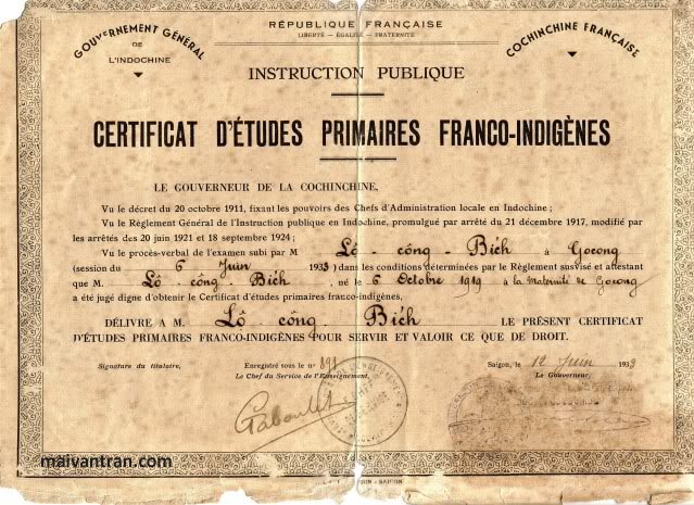 Chứng chỉ và văn bằng tốt nghiệp ở miền Nam trước 1975