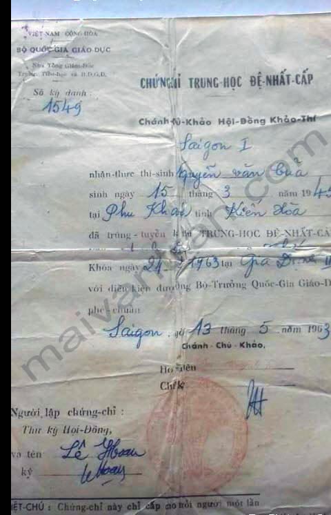 Chứng chỉ và văn bằng tốt nghiệp ở miền Nam trước 1975
