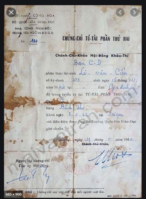 Chứng chỉ và văn bằng tốt nghiệp ở miền Nam trước 1975