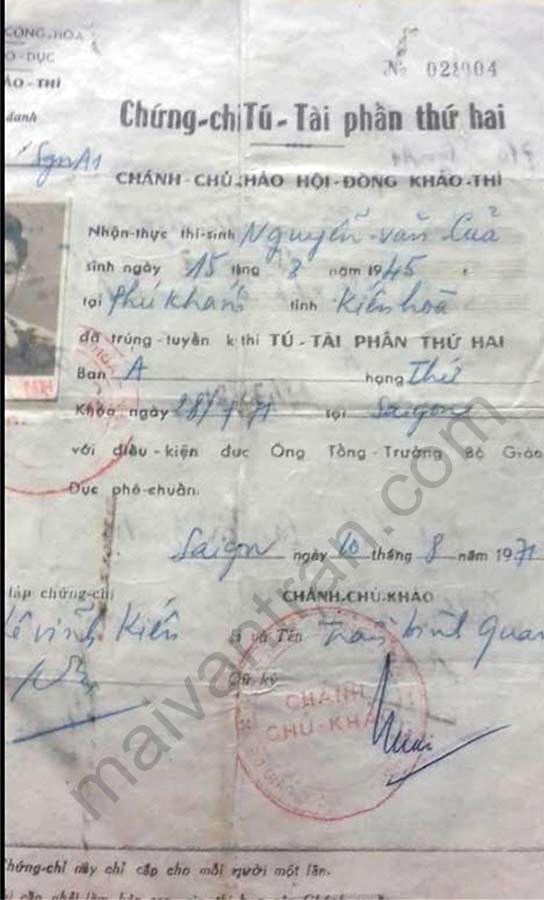 Chứng chỉ và văn bằng tốt nghiệp ở miền Nam trước 1975