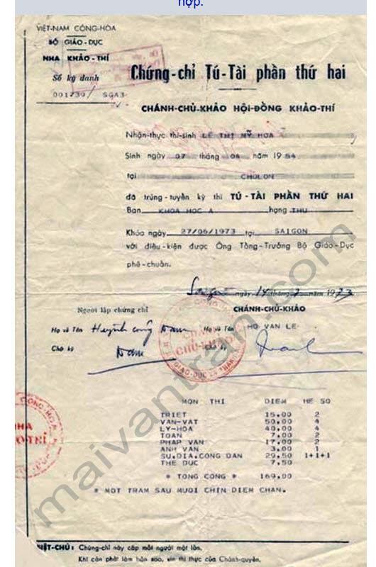 Chứng chỉ và văn bằng tốt nghiệp ở miền Nam trước 1975