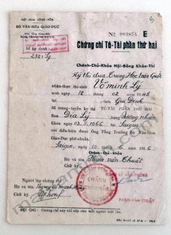 Chứng chỉ và văn bằng tốt nghiệp ở miền Nam trước 1975