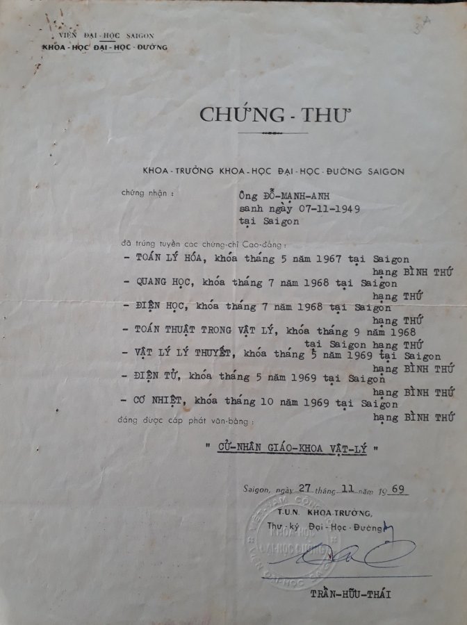 Chứng chỉ và văn bằng tốt nghiệp ở miền Nam trước 1975