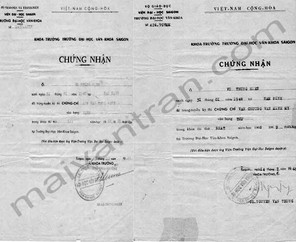 Chứng chỉ và văn bằng tốt nghiệp ở miền Nam trước 1975