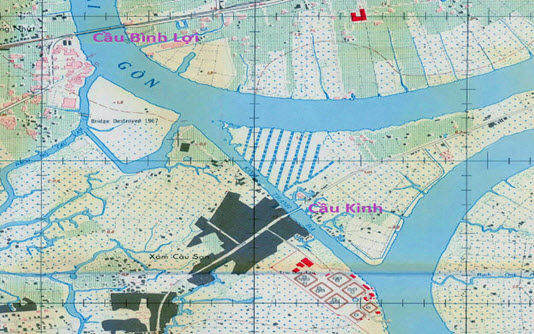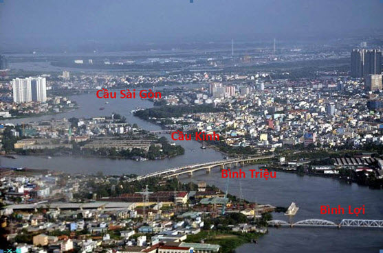 Hình 4: Không ảnh định vị những cầu xưa trước 1975 trên sông Sài Gòn (vùng Bình Lợi-Thanh Đa)